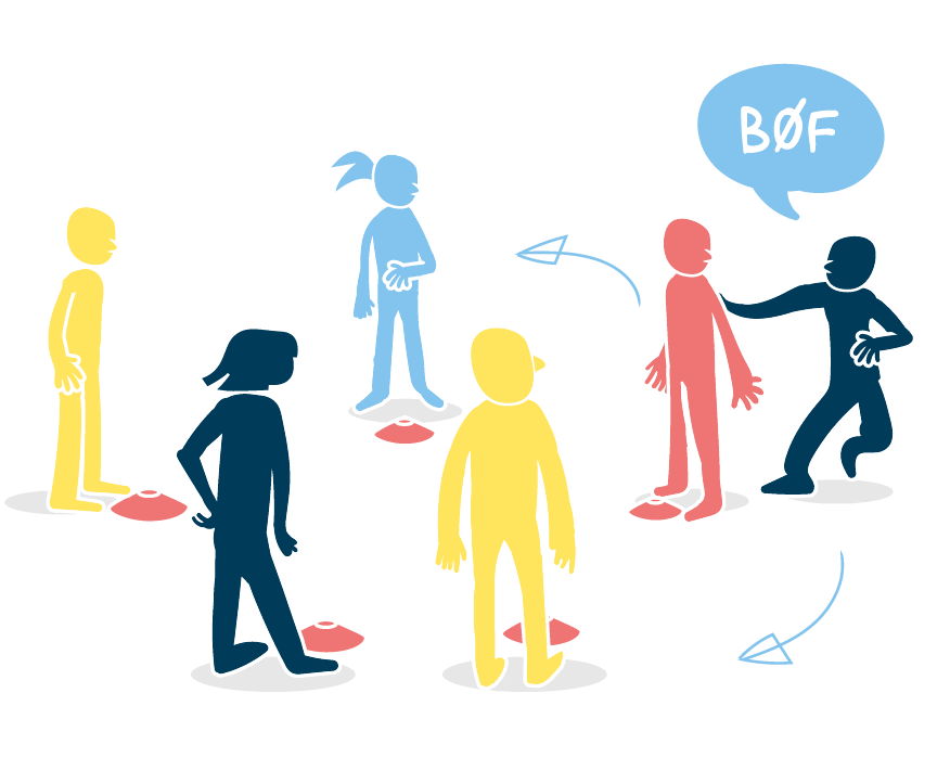 - Bankeren udvælger 1 at dyste imod. Når denne elev klappes på ryggen, siges der ”BØF”.