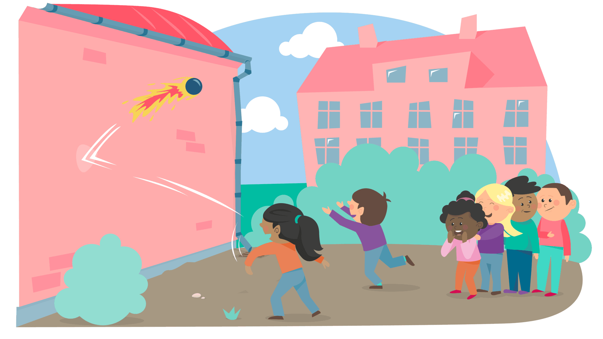 Av for den! Der er kommet en rund, brændende dims ind på skolen! Der er brug for ildtæmmere for at slukke ilden. Mon I har nogle ildtæmmere i klassen? Læs historien op for eleverne og send dem derefter ud på legepladsen. Måske de har lyst til at lege det, de netop har hørt i historien.