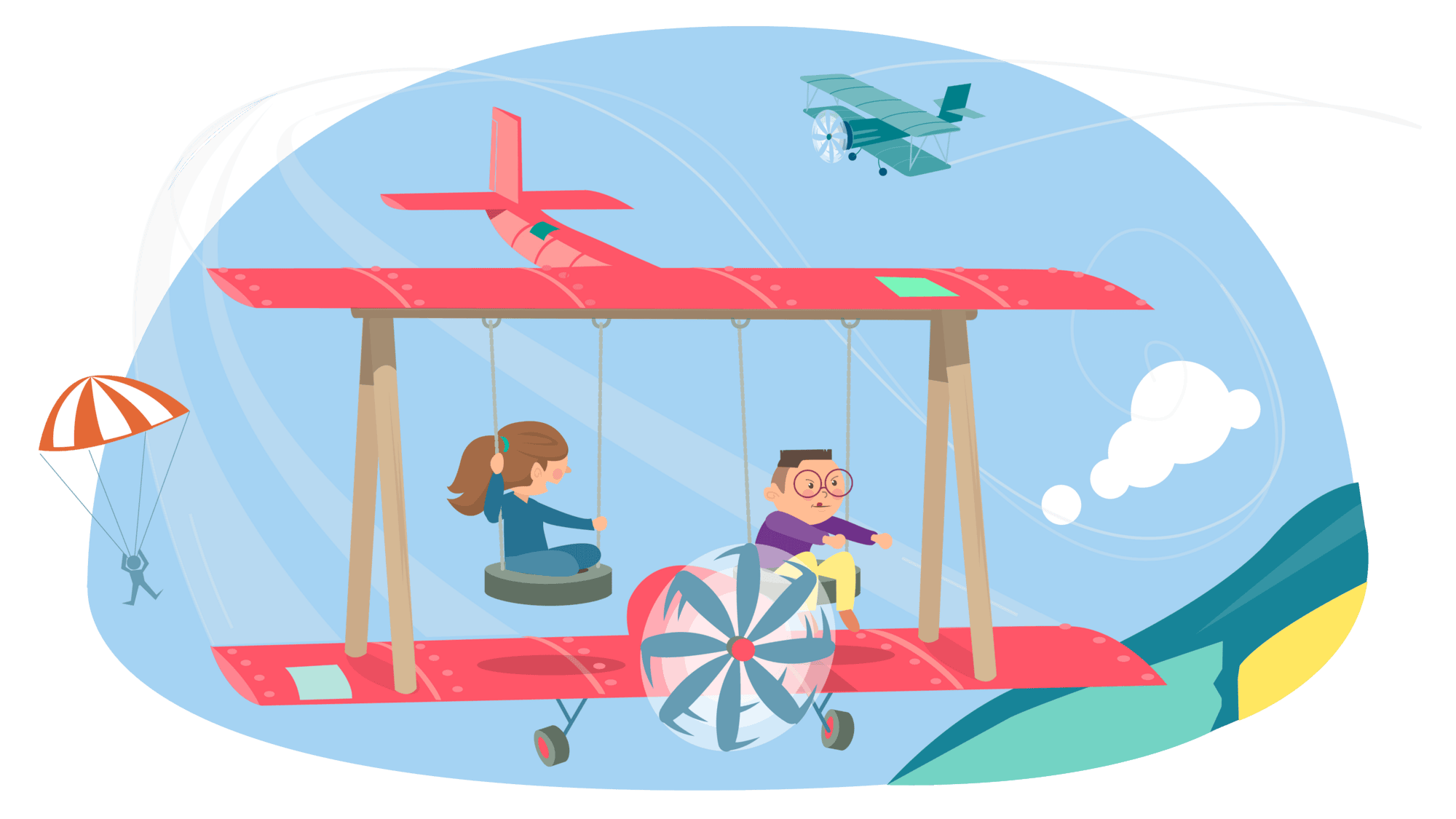 Velkommen ombord på dette fly! Læs historien op for eleverne med din allerbedste pilotstemme og send dem derefter ud på legepladsen. Måske de har lyst til at lege det, de netop har hørt i historien.