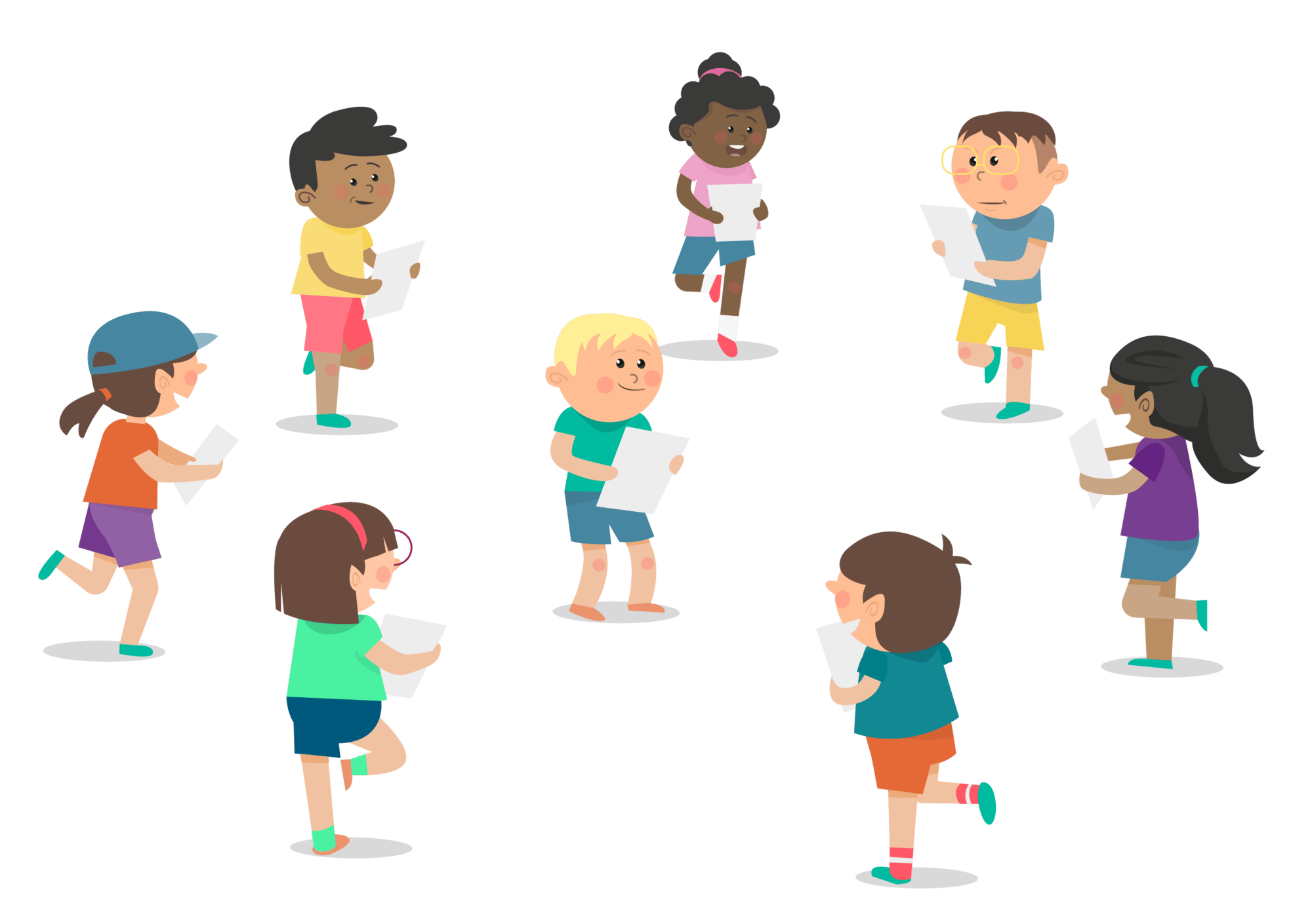 - Eleverne stiller sig i en rundkreds og får udleveret en seddel hver. I midten af rundkredsen er én elev. Alle elever skal stå på et ben.
