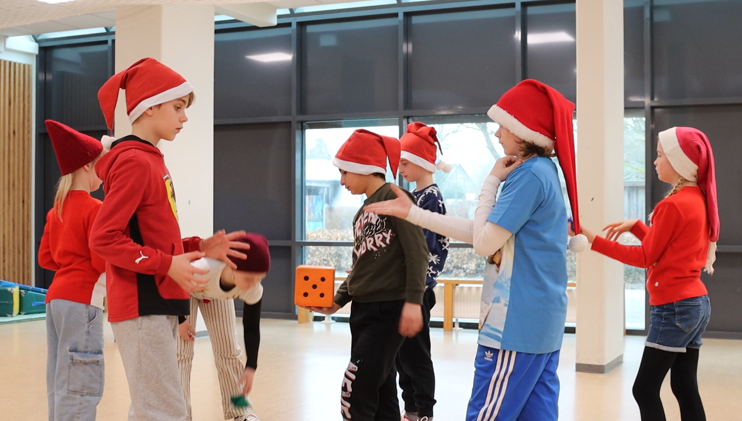 For at eleverne må tage en gave, skal de ”slå en 6’er”. Det gør de ved at stå ved keglen og kaste ærteposen i hulahopringen. Hvis ærteposen rammer hulahopringen, er den inde – der er altså slået en 6’er. Når man har kastet ærteposen, henter man også selv ærteposen og giver til den næste i gruppen – uanset om man scorer eller ej.