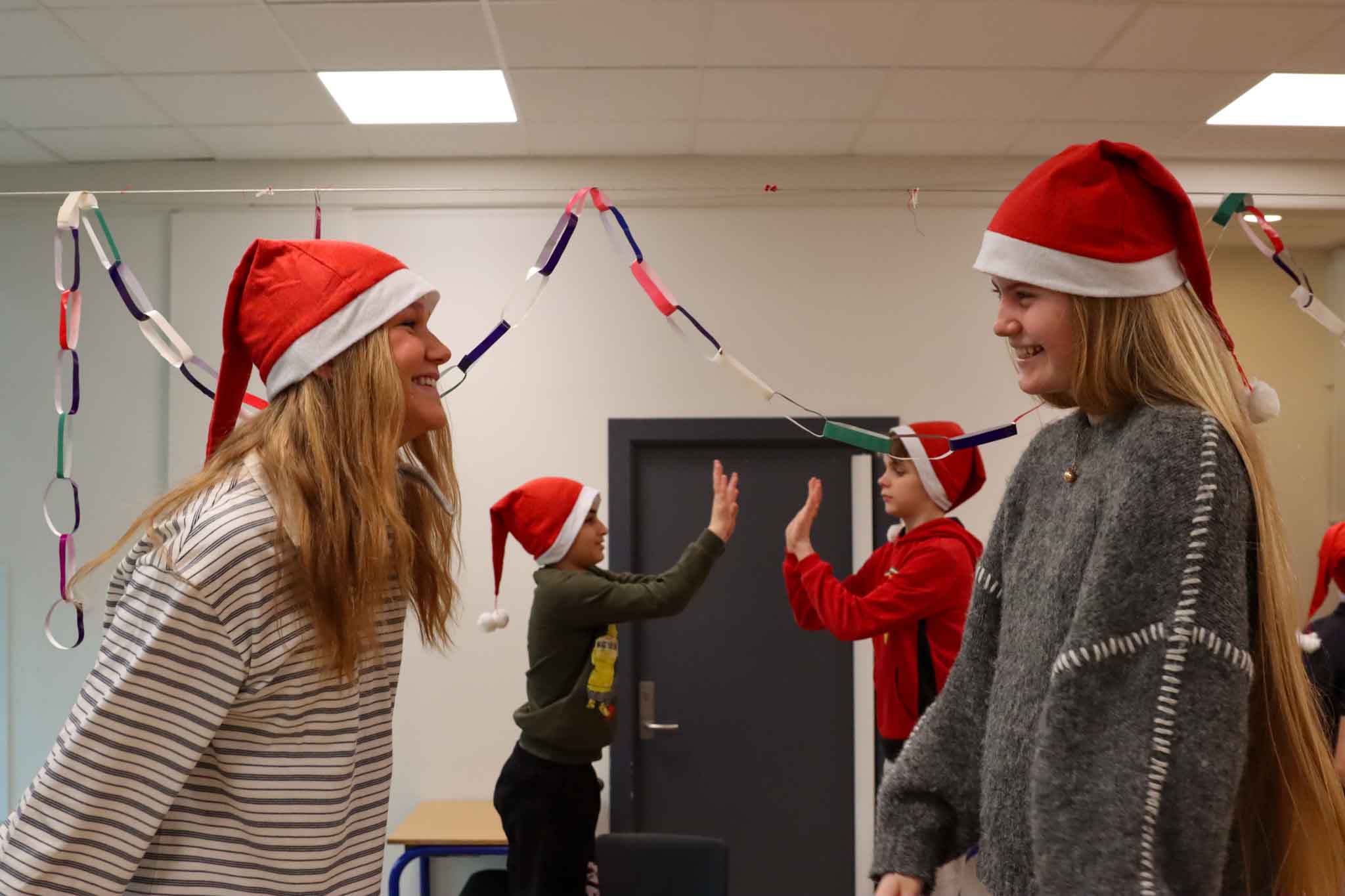 To udskolingspiger i nissehue