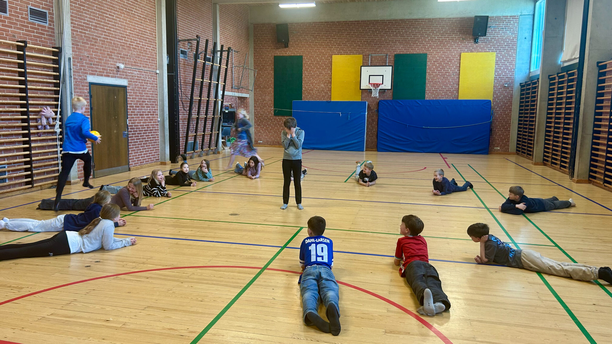 - De elever, der ligger ned, kan vælge at ændre på deres position undervejs for at udfordre de andre. Fx til planke eller stående på alle fire.