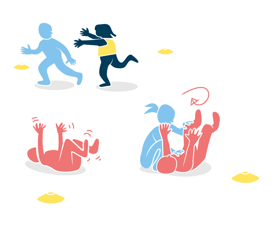 - Fangeleg kan have meget høj intensitet. Hvis eleverne har brug for lavere intensitet, kan de bevæge sig rundt på en langsommere måde, fx ved at gå, kravle eller bevæge sig som en krabbe.