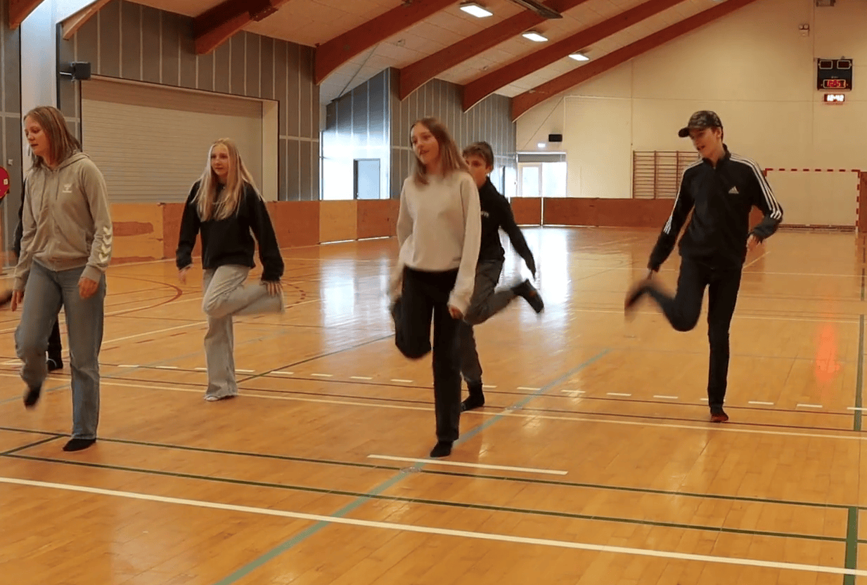 Formålet er, at eleverne bevæger sig og får smil på læben til en glad julesang.